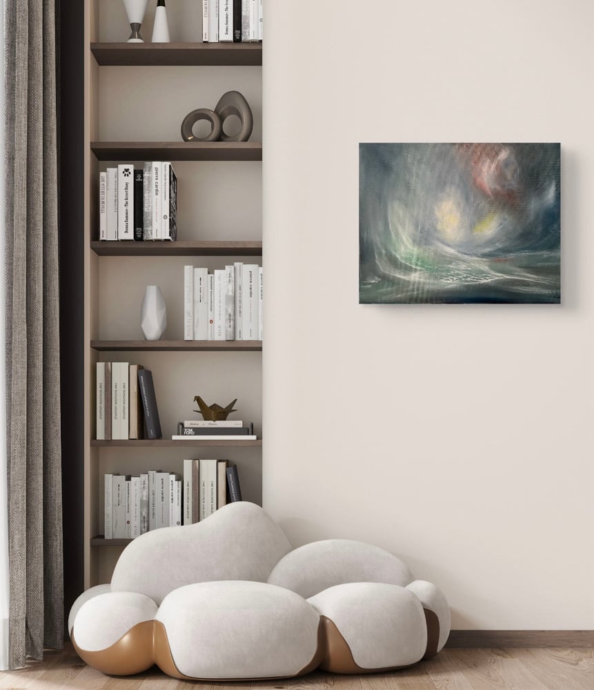 An imagined waterscape where sea and cloud are visibly connected, displaying the transfer of energy from one form to another.